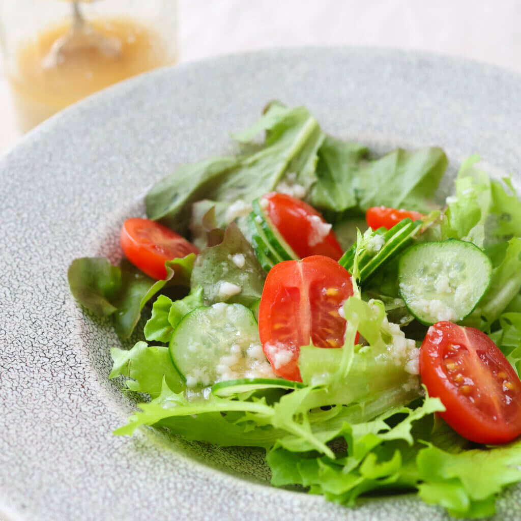 サラダはもちろん、蒸し野菜や肉、魚のつけだれにしてもおいしいドレッシングです。